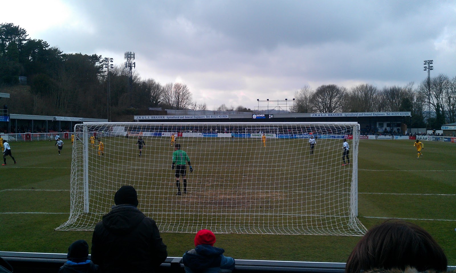 Suitably well oiled. The game itself up at Crabble was, for a bumper crowd of over a thousand, I thought one of those that you hoped more than expected to get anything out of. And it ended up being a very tense affair, like in the first half there was nothing of note that happened except for once again a couple crosses that went begging for someone to get a part of their body to and the effort of the half was when new boy Ali Fuseini hit the bar from 25+yrds just before the interval with a shot that just seemed to dip at the end.