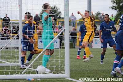 | Jarvis’ header against former U’s stopper Karlo Ziger. Chelsea PSF. |