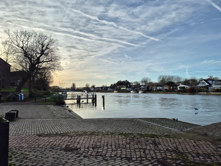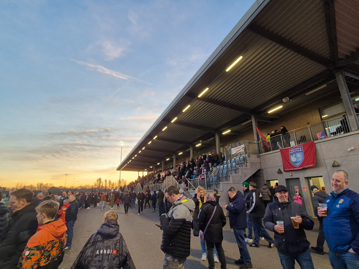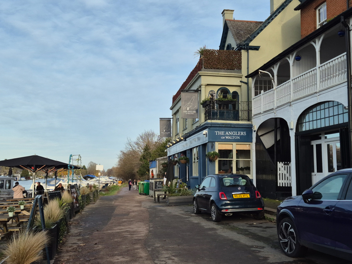 Shortly before depart, we’re joined by Rax’s mate Paul who’s tagged along to a few games this season, mostly when we’ve been shite. Silly lad. We’re of course already teasing him about his poor life choices “Definitely have a replica shirt by the end of the year” being one comment. From here, we head round to the Swan by the river. A lovely old Youngs gaff charging Youngs prices. Inside we find Keepo, DB and Dave hanging about and mostly complaining about the price of the beer. So we decide to neck one and nip through the Swan’s beer garden to reach the Anglers, right on the river itself. From here, the ground is a 20 minute walk up the tow path.