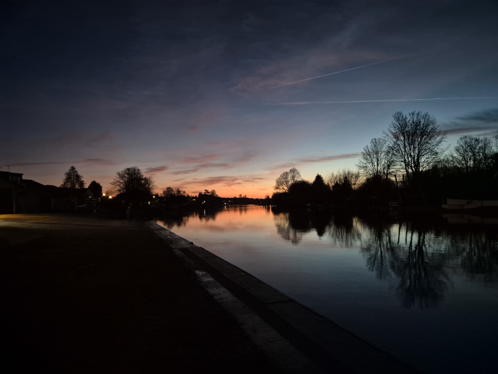 At this point, activating the ‘Rule of 3’ is being strongly debated and a return to the Anglers via the toe path is looking very tempting. Then with a little over 15 to go, another soft as fuck pen is conceded (how many is that this season now? 12? 13?) and that’s tucked for 4-0. But not before the soppy ref shows Jake Taylor a straight red for some reason. Right, pub? Pub. I head off with Dr Bell in tow and we walk back down the riverside path with just enough ambient light left to see where we’re going. The afterglow of the sunset gives us a lovely view and a couple of nice pics for the ‘gram at least. Hello again ladies, two pints of your finest please! Soon after, news reaches us that Charlie Bell’s come on and pulled one back and the ref’s added 11 minutes on at the end! Fuck that.
