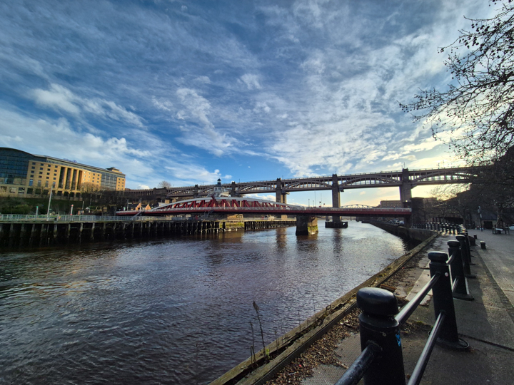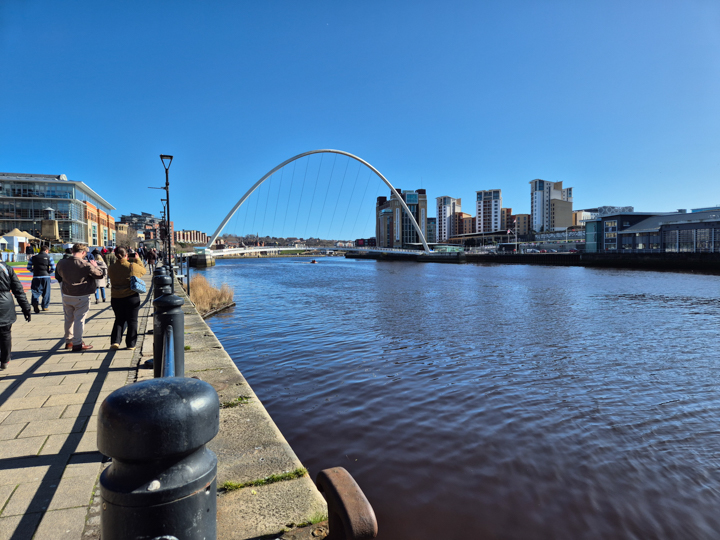 Back at the hotel, we find ourselves being interrogated by security as to our names and or room numbers to gain access. Most of us are past remembering such facts by this point and just wave our key cards which appears sufficient. Unsurprisingly, back in the haunted attic, sleep comes quickly. The following morning, I’m awakened by the tiniest gap in the curtains allowing a perfectly aimed laser beam of sunlight to be aimed directly into my eyes. Oh do fuck off!! Sunshine? Up here? What are the odds of that?? With morning ablutions complete and a Premier Inn fry up in me, I head out to take a walk up the Tyne in the sunshine to help blow out the cobwebs before heading round the corner to the Crown Posada to find a freshly arrived 4Days, Greek, Indy and a passing Kiddo and missus chatting. Right, it’s about 11. Pint? Pint.