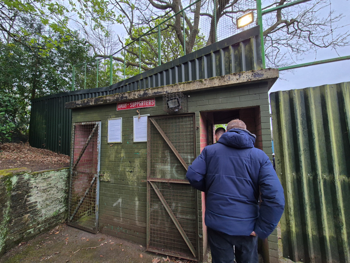 Finally inside the ground, I look at the tea bar and decide 7 quid for a bacon roll is a bit much and instead wander onto the terrace in the corner to await the game. This, when it starts, really isn’t good enough again. The first 15 or so are very Morecambe & Truro-esque with us miles off it all over the park. From minute one, Harris gives the ball away and Topallaj has to haul a bloke down to cop a yellow with barely a minute gone. The hosts are ahead inside 5 minutes when a crap free-kick is put in, Donkor makes a horrific mess of clearing his lines and their lad knocks it on for a colleague to poke home in off the post. The nonsense continues and 15 in, Ecclestone makes a mess of a back pass and then hauls down the bloke in the box. Yes, us conceding a penalty. How unusual. The geezer converts and we’re staring down the barrel again. Up in the corner of the terrace, the little gaggle of black clad ultra-herberts who’ve rocked up today look a bit lost as the dogshit on the pitch means there’s almost nowt to posture at the home fans about.