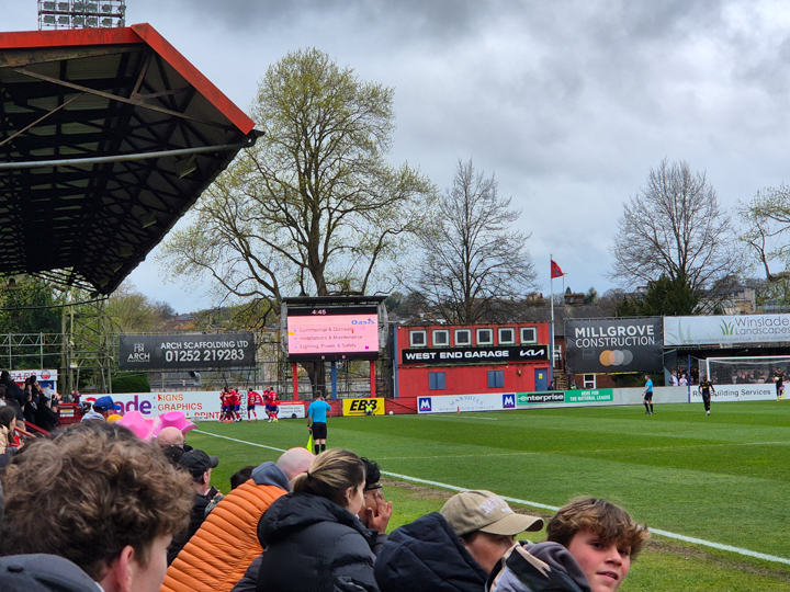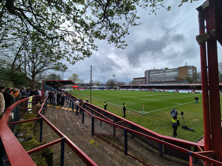 Next up was a midweek awayer which saw a desperately important 2-0 win over an Eastleigh side that decided to be almost as calamitously shit as us at home with their keeper sent off inside 5 minutes and conceding the first straight from a corner. Still, it meant that we ended the night 9 points above 21st and almost but not quite safe. Functionally if not quite mathematically if you will. After that was league leaders Rochdale at the Lane, which to no one’s real surprise the team decided was a bit more worthy of their time and effort, even given it was at GGL. 1-0 up thanks to a Charlie Bell banger, 89 minutes played and we’ve barely given them a sniff. Ref bizarrely finds 5 added from somewhere from one of the least interrupted halves of football I’ve seen in years and then allows 8 to be actually played. Oh you better believe we shit the bed. Proper vindaloo and 20 pints of Guinness mattress burner job. Scores level on 90, winner on 97. Scenes, limbs, drama and more content for the National League socials again. Big sigh.